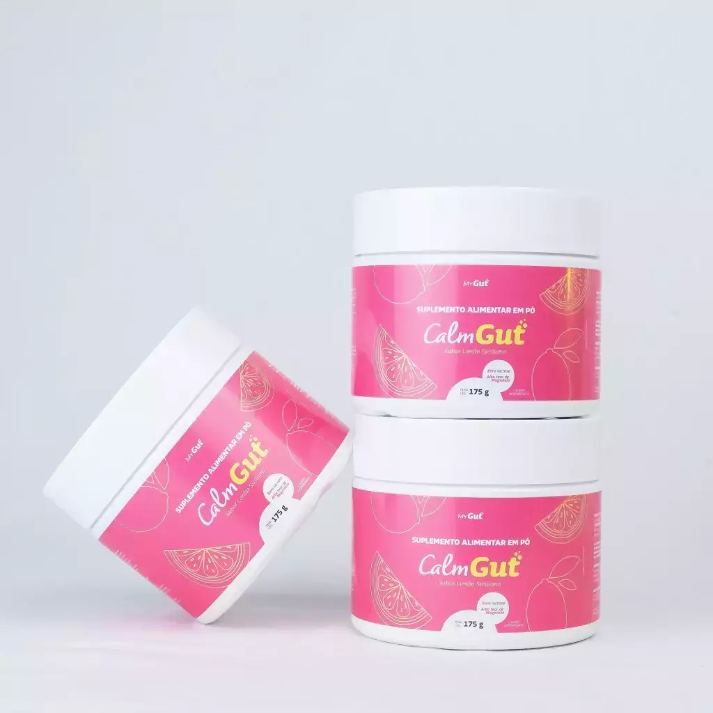 CalmGut é um suplemento alimentar em pó, com sabor de limão siciliano, desenvolvido com 10 nutrientes essenciais que atuam na saúde intestinal, digestão, imunidade e bem-estar geral.